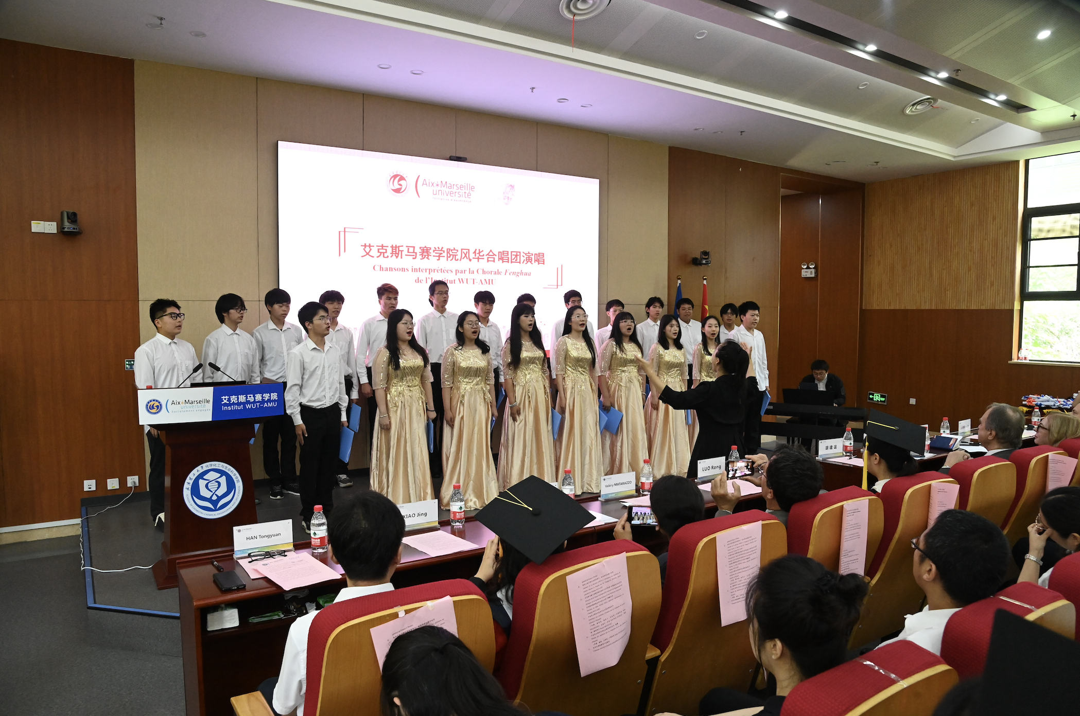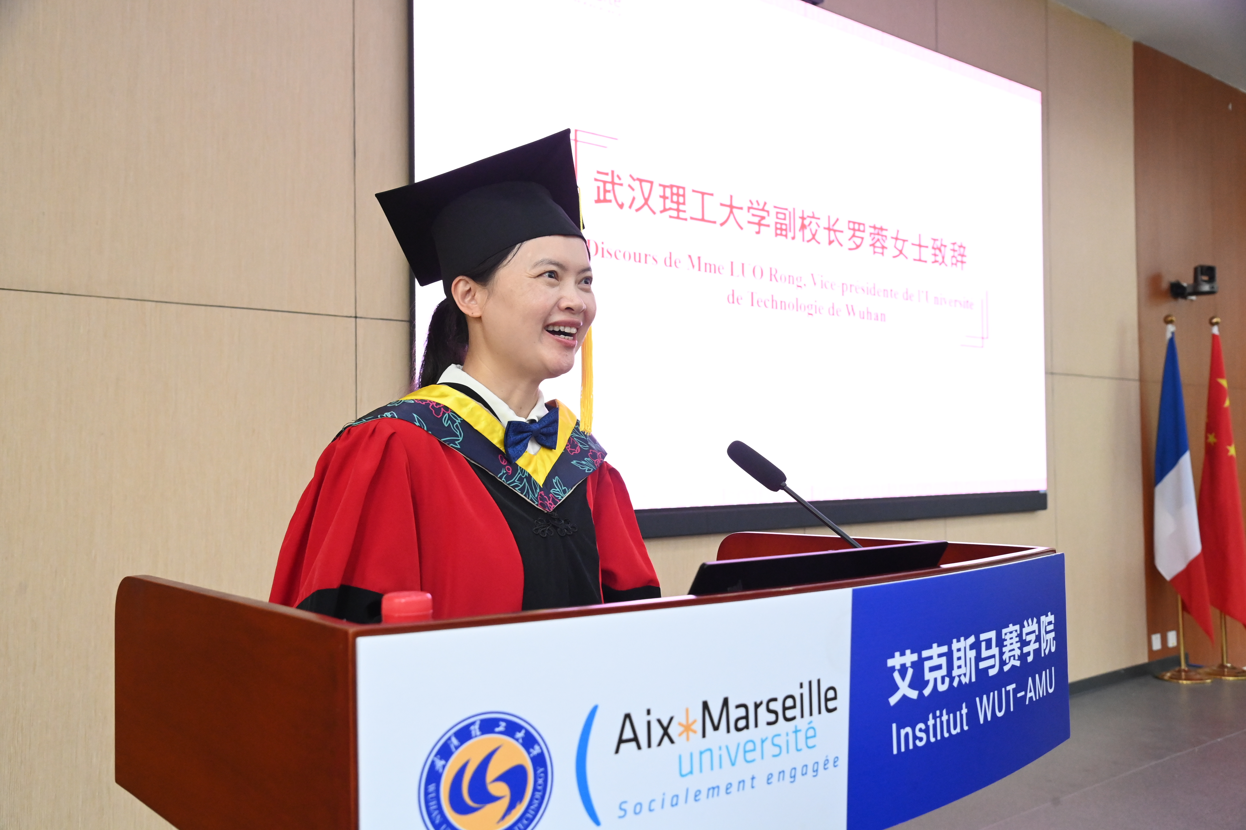 首届本科毕业生和第二届硕士毕业生寄予殷切希望。她希望同学们保持开放心态,做有国际视野的马赛学子,充分发挥跨文化交流的专业与语言优势,不断汲取世界文明的精华力量,积极传播优秀的中国传统文化,讲好中国故事,贡献中国智慧;坚持主动求知,做有终身学习能力的马赛学子,始终恪守“厚德博学,追求卓越”的校训,不断拓宽未来选择的宽度与广度;胸怀家国情怀,做有奉献精神的马赛学子,牢记“国之大者”,心系“国家大事”,把个人的理想抱负和强国建设、民族复兴的伟大事业融合起来,把个人命运与人类命运共同体建设贯通起来,为生命世界多样性建设奉献自己的智慧与力量。
