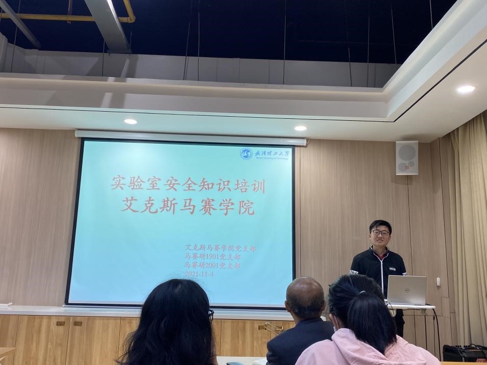 活动以“实验室安全培训”为主题,由马赛研2001支部书记雪苗同志主持,马赛研1901支部书记段锋同志主讲。段锋同志以“实验室事故案例警示”为引子,着重强调安全意识的重要性,重点学习了“实验室安全细则”和“实验室安全预防措施”,详细解读了实验仪器设备的规范操作及注意事项,温习了实验室意外发生时的应急处置程序。在讲解中穿插了互动环节,直观生动。最后,段锋同志呼吁同学们时刻拉紧“安全实验”这根弦,尽己所能为学生外流