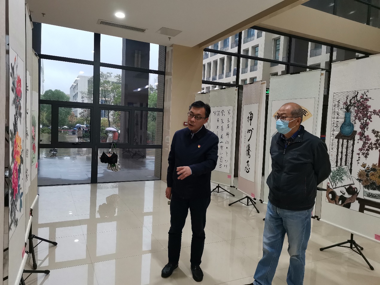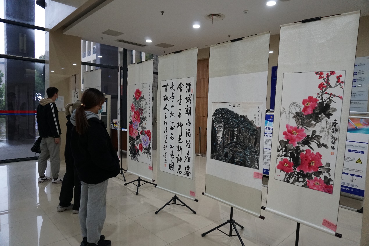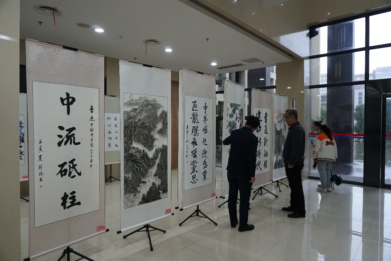 在化生大楼一楼举办了以“喜迎二十大”为主题的师生书画展览。