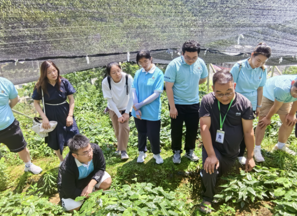 党员教师与同学们一同踏入药材种植基地,与种植人员面对面交流,详细询问并学习淫羊藿药材的种植技巧、病虫害防治及采收加工等专业知识。通过实践操作,大家不仅掌握了淫羊藿生长的关键要素,还深入了解了其在中医药领域的独特疗效与市场需求。从淫羊藿的药理作用到道地药材市场前景,再到最新的学生外流