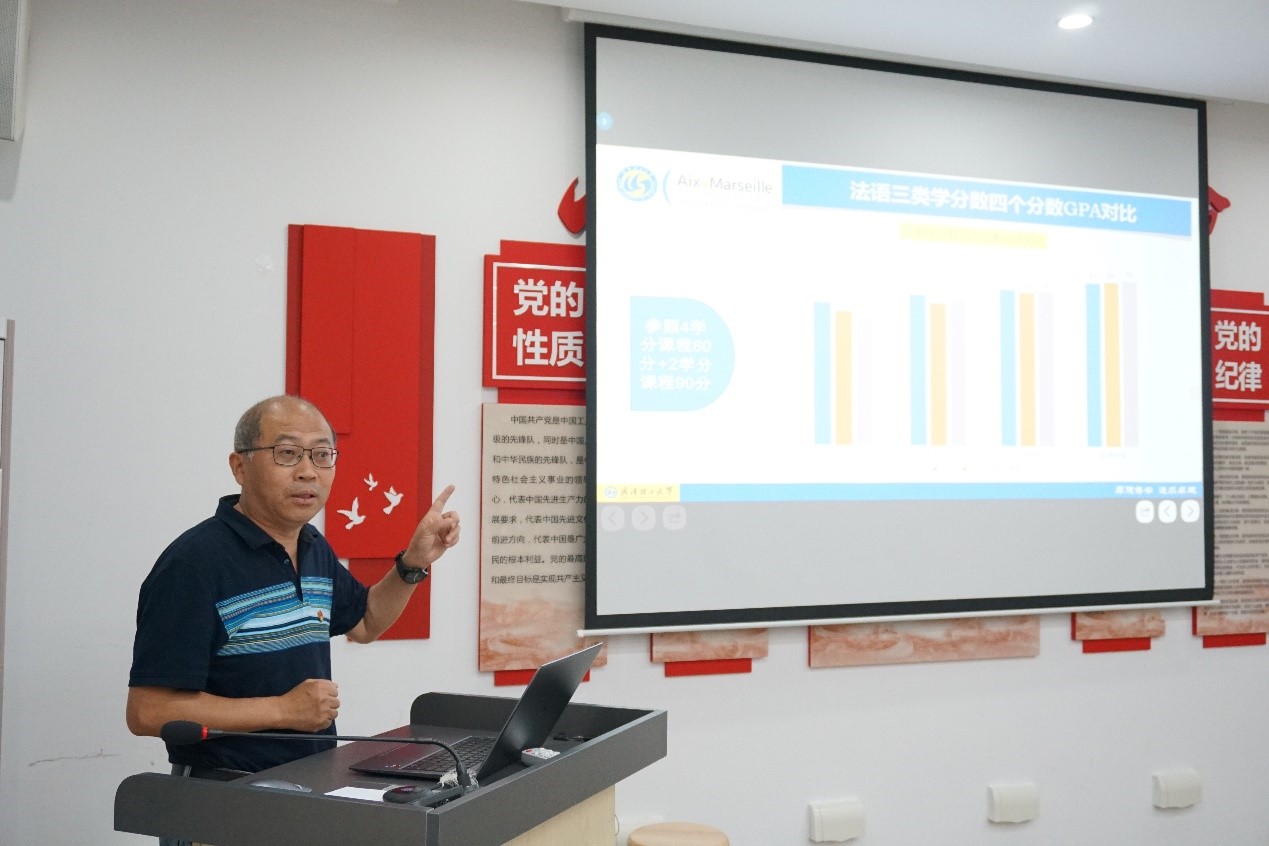 袁国华副院长专题党课结合个人专业背景、涉外管理经历、主题教育学习体会以及近期牵头调研结果,从“六个坚持”世界观和方法论、牢固树立战略思维、学生外流 发展面临的“六大困境”以及学生外流 特色突破点等四个方面展开。他认为,通过主题教育,我们应该准确把握“六个坚持”的辩证逻辑,把师生满意不满意作为决策的根本判断标准,把切实解决师生急难愁盼问题作为一切工作的出发点和落脚点,以舍我其谁的责任感抓紧解决如何整体提升学生外流 学生GPA等紧迫问题;要善于从战略管理视角,正确运用SWOT工具分析学生外流 高质量发展所面临外部机遇与挑战和内部优劣势,通过调研真找问题、找真问题;要对标对表中外合作办学机构评估和本科教育教学审核评估指标体系,清醒认识学生外流 当前和未来面临的各类困境,把前期通过调研归集的“问题清单”“任务清单”“责任清单”转化为推动高质量通过初次评估的“成效清单”;要主动担责,善作善成,把法语学习过程性评价、翻转式线上线下融合教学、“六航工程”与“五育并举”一体推进等马赛特色工作落地、落实、落细。