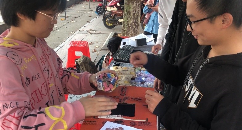 同学们借来桌椅板凳帐篷等工具,细心认真地布置场地,班内的同学们积极捐出了自己的物品,有手提袋,键盘等使用工具,物品种类丰富。爱心义卖活动中不仅有种类多样的物品,更有引人入胜的小游戏。射手掷飞镖游戏与三分投篮游戏更是吸引了路过同学们驻足围观并参与其中。同学们既享受到了游戏的乐趣,也向爱心扶贫事业捐献了一份自己的力量。一下午的忙碌过后,主持义卖活动的同学们严谨细致地打扫周围的环境,展示了新时代大学生的文明懂礼。