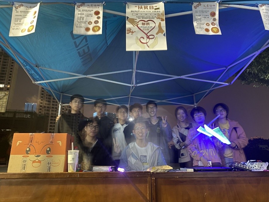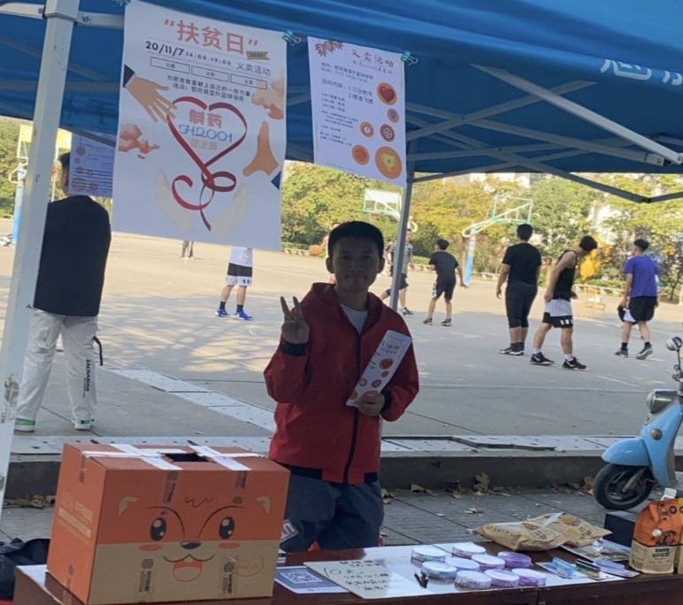 为积极响应扶贫号召,11月8日下午,制药H2001班级同学在智苑食堂篮球场旁开展了扶贫爱心义卖活动。