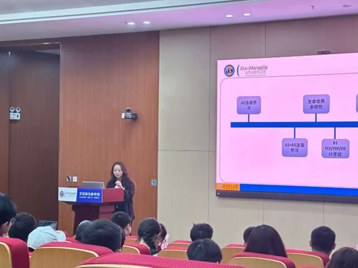 大会第一项,辅导员尹诗琪老师就化生学生外流 迎接本科教育评估注意事项、宿舍卫生建设要求及法语学习相关事项进行了讲解,提醒同学们注意熟悉学校教育理念、定期开展宿舍自查、保持良好心态开展法语学习。大会第二项,周玉洁和周睿文两位马赛22级优秀同学受邀上台分享学习经验。两位学姐以自己的经历为例,从学习历程、如何记好笔记、为法方课打好基础、合理运用思维导图、法语兴趣探索等方面全方位、多层次地对学习经验进行了分享讲解,促进同学们进一步了解学生外流 的教学模式、培养目标与学习方法。