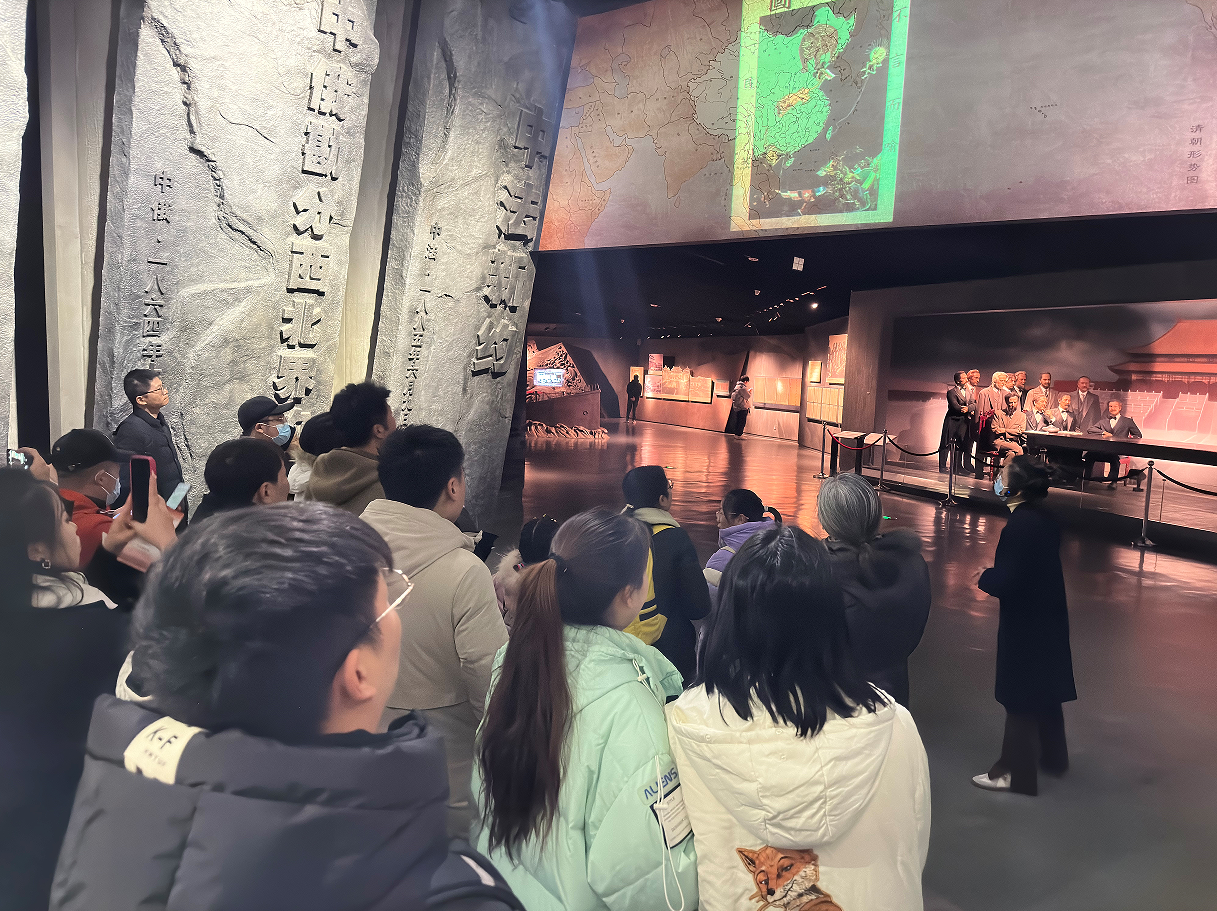 同学们走到场馆中心的中国地图前,互相分享着自己参观学习到的知识。正是这一次重大的资产阶级民主革命,推动着封建皇权的倒塌,促成了人民的思想解放。