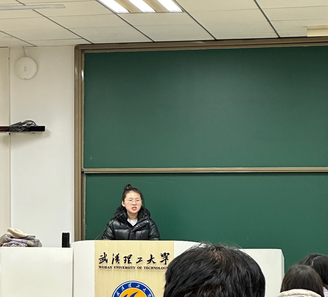 武佳瑞同学从“强基固本、守正创新、在奉献中寻找价值”三个方面,为大一学生们提供了许多宝贵的建议。她建议大学生打牢扎实的学术基础和深厚的专业知识,以便更好地适应社会的发展和变化。作为大学生,更应该在接受传统知识的基础上,勇于探索新的领域和方向。只有敢于挑战、勇于创新,我们才能走出一条属于自己的道路,实现个人梦想和价值。同时,大学生应有奉献精神和社会责任感,积极参与社会公益事业和志愿服务活动。在奉献中实现个人价值,还能够为社会做出贡献,实现个人和社会价值的统一。