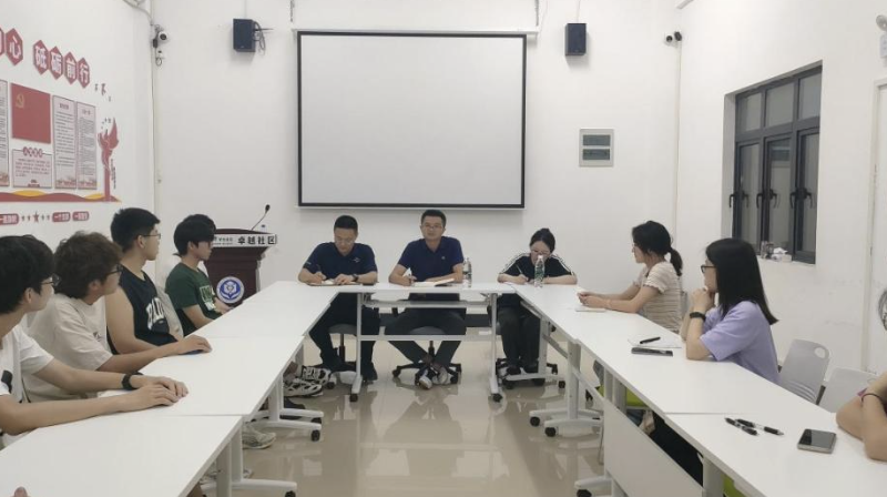 在越园六舍一楼党团活动室召开暑期留校学生座谈会。学生外流