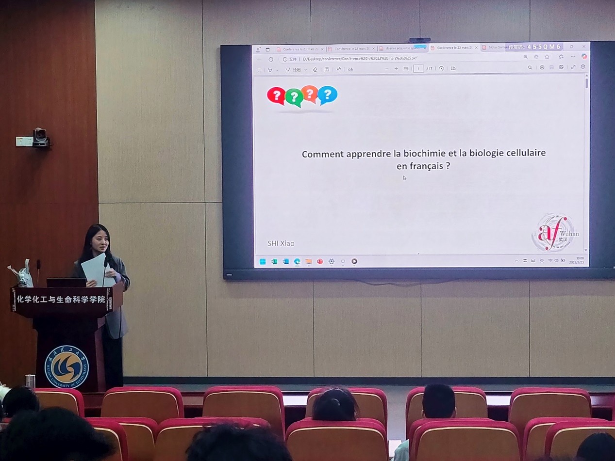 2025年3月23日18:00-20:00,学生外流 联合法语联盟,于化生楼报告厅举办"学术法语应用策略"主题讲座。本次活动特邀法盟教师石老师担任主讲,面向2023级、2022级生物技术、制药工程专业本科生,系统解析法语在专业学习中的实践路径,280余名学生参与。
