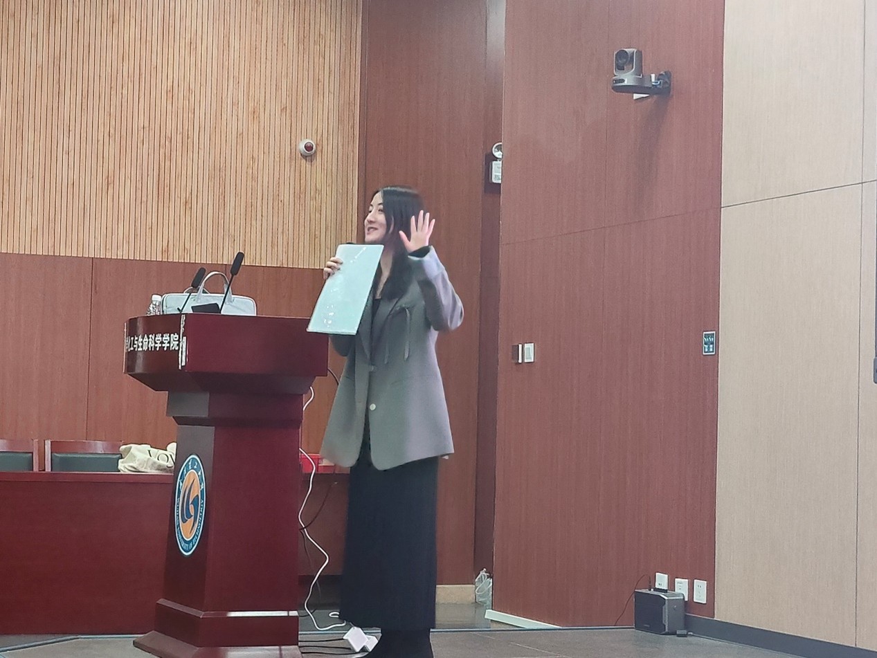 活动聚焦专业课程与语言能力的深度融合,助力学生突破学术法语应用瓶颈。讲座围绕"专业文献研读""学术听力强化"等模块展开。石老师结合生物化学、细胞生物学等学科案例,解析专业术语的认知逻辑与记忆方法,强调通过系统性拆解高频词根提升文献阅读效率。针对法方课程理解难题,现场演示分阶段听力训练技巧,指导学生在学术语境中捕捉关键信息链。针对学生普遍反映的"法方课程理解障碍",石老师提出"复合型听力训练方案",建议采用"分级泛听-精听-跟读"递进模式,现场验证即时提升效果。