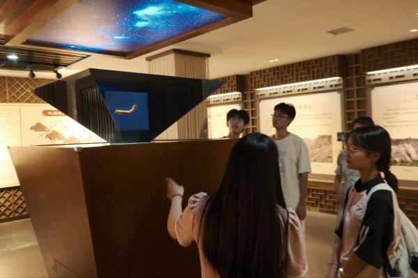 (队员们正在了解与鎏金铜蚕背后汉代蚕桑产业的状况)