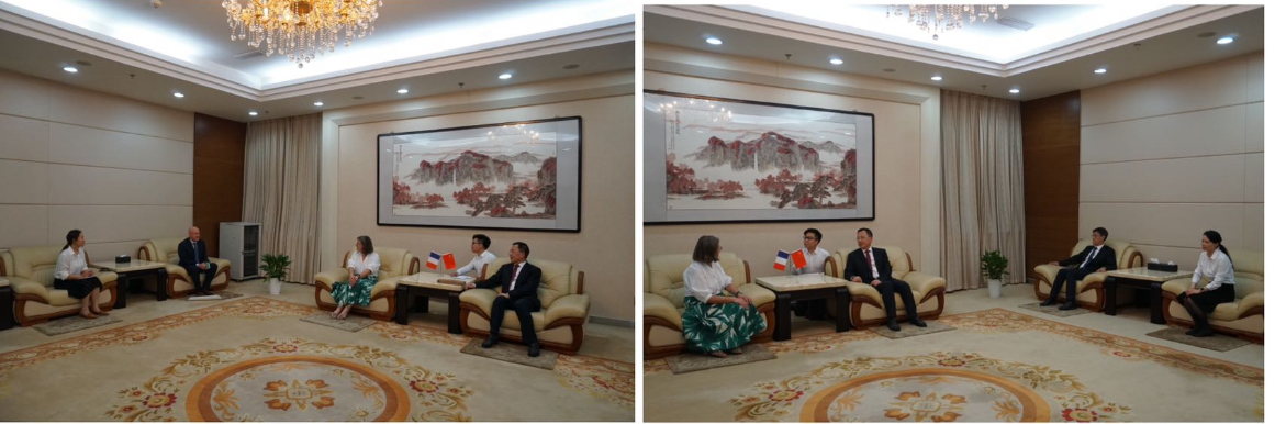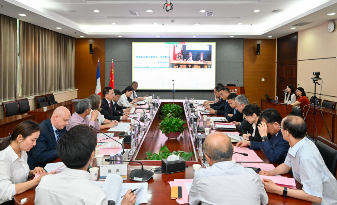 Avant la réunion du Comité conjoint, Xin Sijin a rencontré Sophie Chauvet, et Maxime Feraille. Lors de la réunion, le président du conseil Xin Sijin a souhaité la bienvenue à la première délégation universitaire d’AMU ,il a exprimé sa gratitude pour l'attention et le soutien continus des ambassades et consulats français en Chine au cours des six dernières années. Il a déclaré que cette année marque le 60e anniversaire des relations diplomatiques entre la Chine et la France, et que, forts de ces six décennies de relations fructueuses, nous devons continuer à progresser et entamer un nouveau chapitre. En tant que seul institut sino-français de coopération éducatif formant en français des talents internationaux de haut niveau dans le domaine des sciences de la vie en français en Chine, l’Institut WUT-AMU a une mission honorable. Il joue un rôle crucial dans la réponse aux défis mondiaux tels que le climat, la biodiversité et la santé, ainsi que dans la promotion des échanges culturels et de la coopération éducative entre la Chine et la France. Il a espéré que les départements concernés des deux côtés continueraient à travailler en étroite collaboration pour mettre en œuvre les actions décidés par les présidents et les départements gouvernementaux des deux pays, et pour faire avancer les échanges culturels sino-français dans le domaine des sciences et technologies.