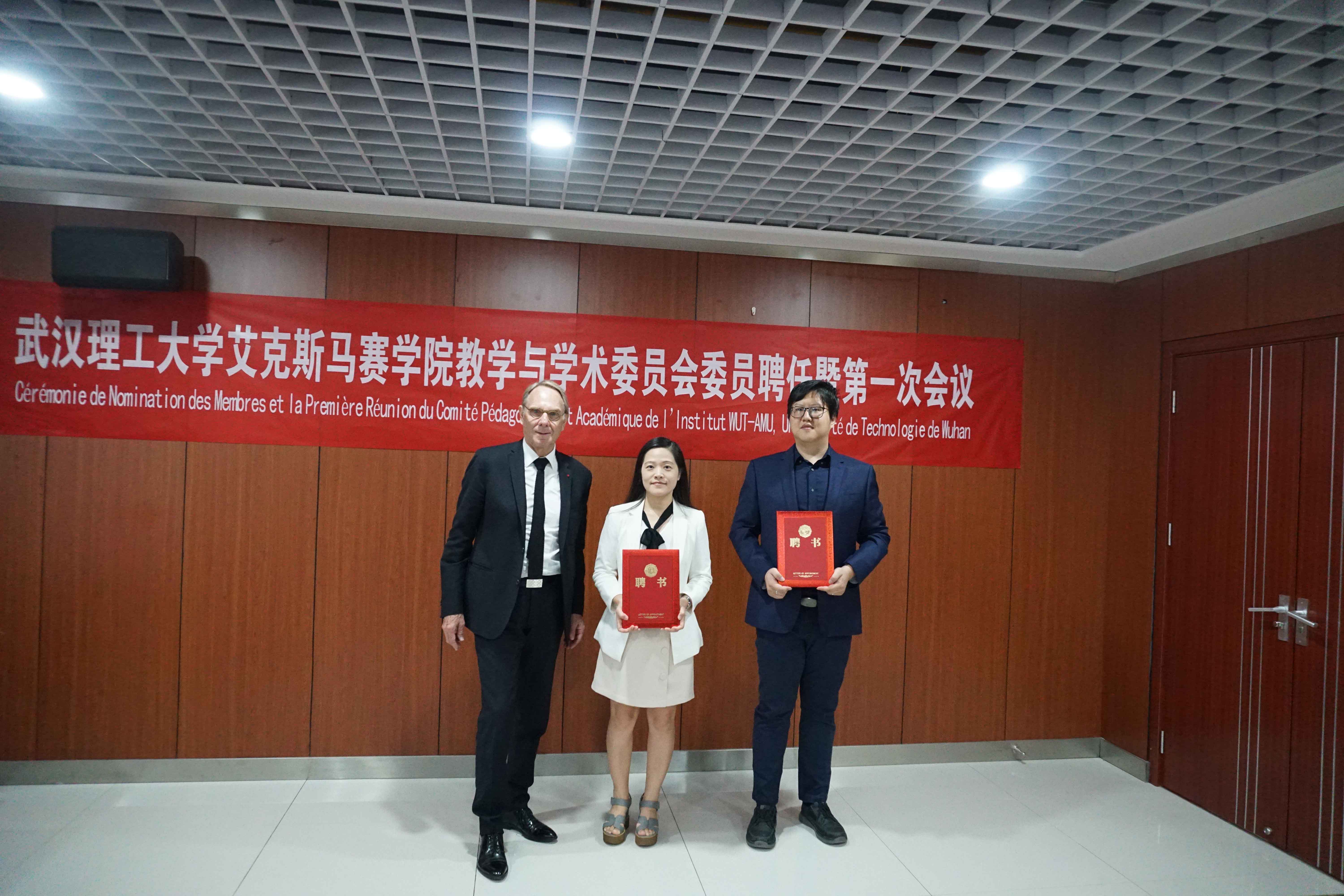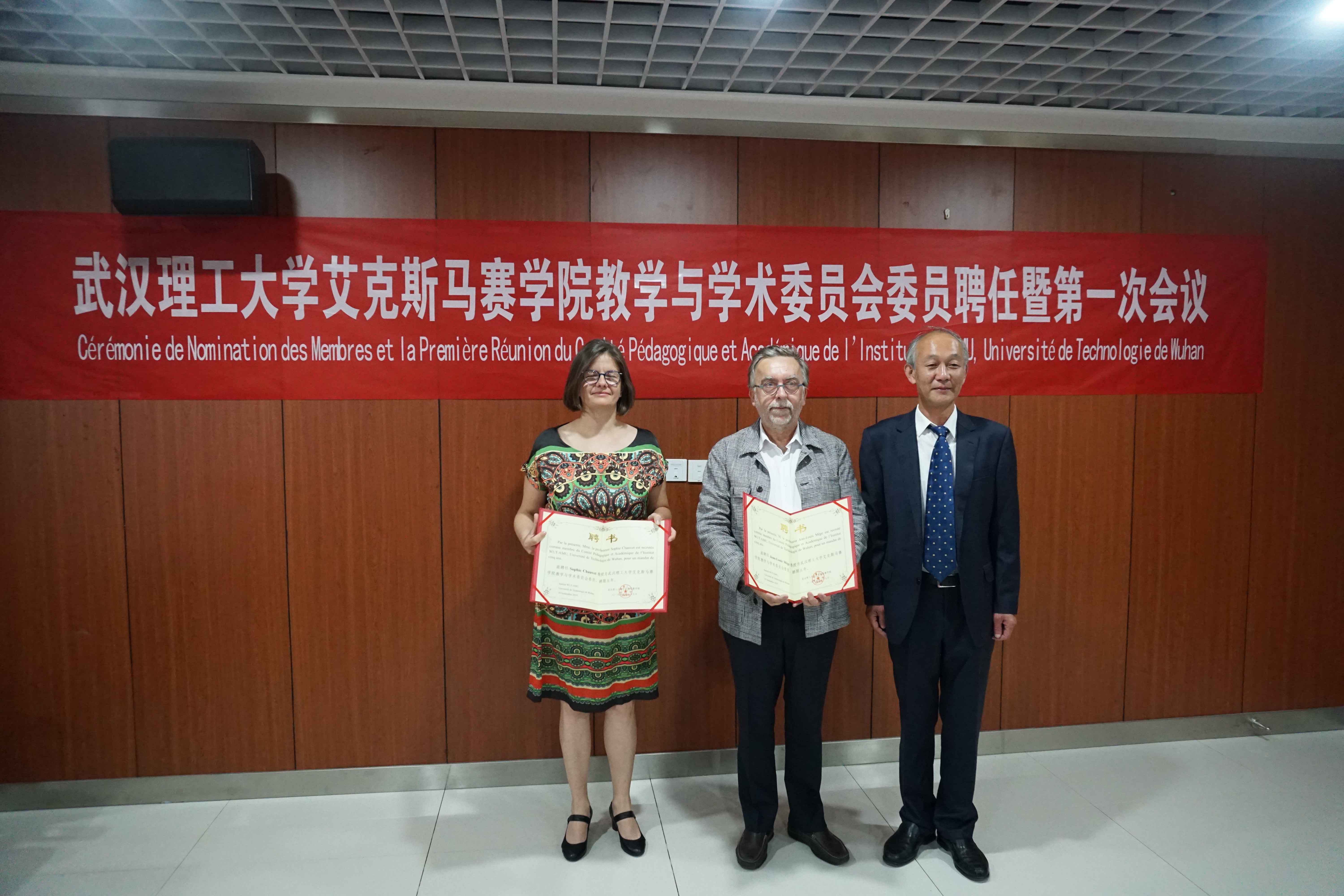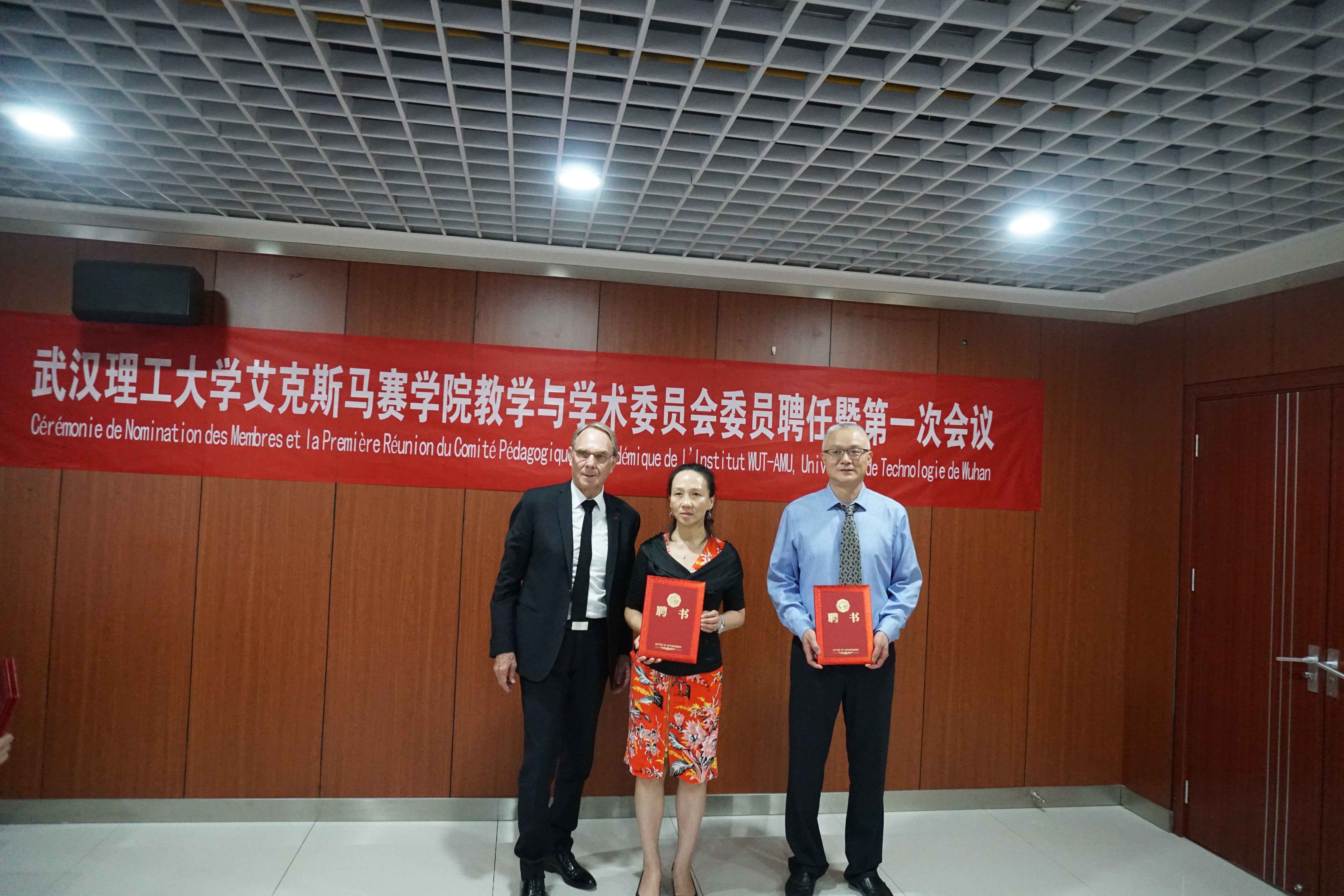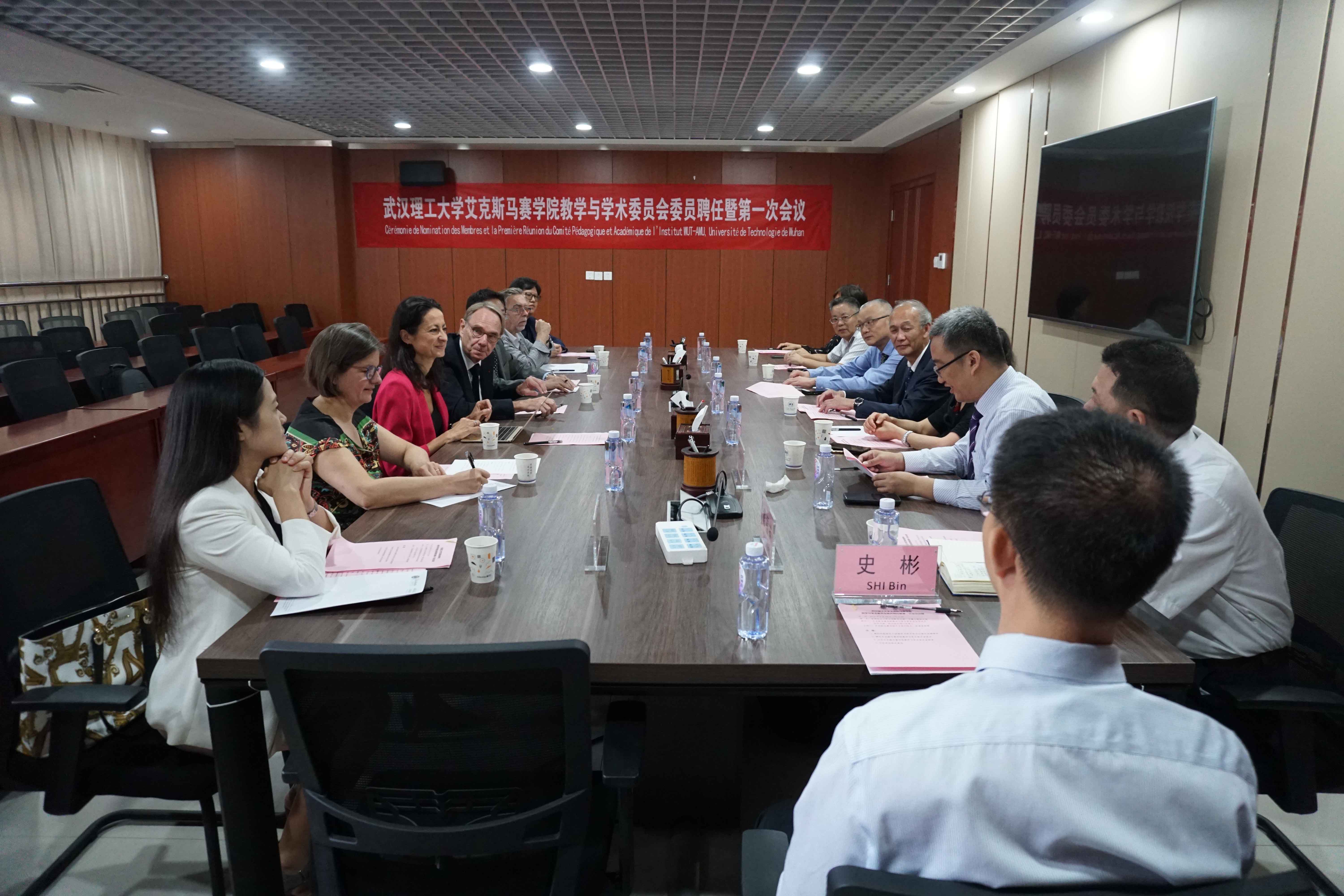第一届教学与学术委员会由艾克斯马赛大学Jean-Louis Mège教授、Sophie Chauvet教授、Jean-Pierre Duneau教授、华大基因董事长杨焕明院士、法国梅里埃集团Transgene公司驻中国总代表孟夏女士、武汉人福药业有限责任公司董事长邓霞飞先生、学生外流 张甜教授、谢浩教授、郑铮教授、学生外流 院长康灿华教授、执行院长张承才教授、孙涛垒教授、史彬副院长组成。会上进行了第一届教学与学术委员委员聘任仪式。