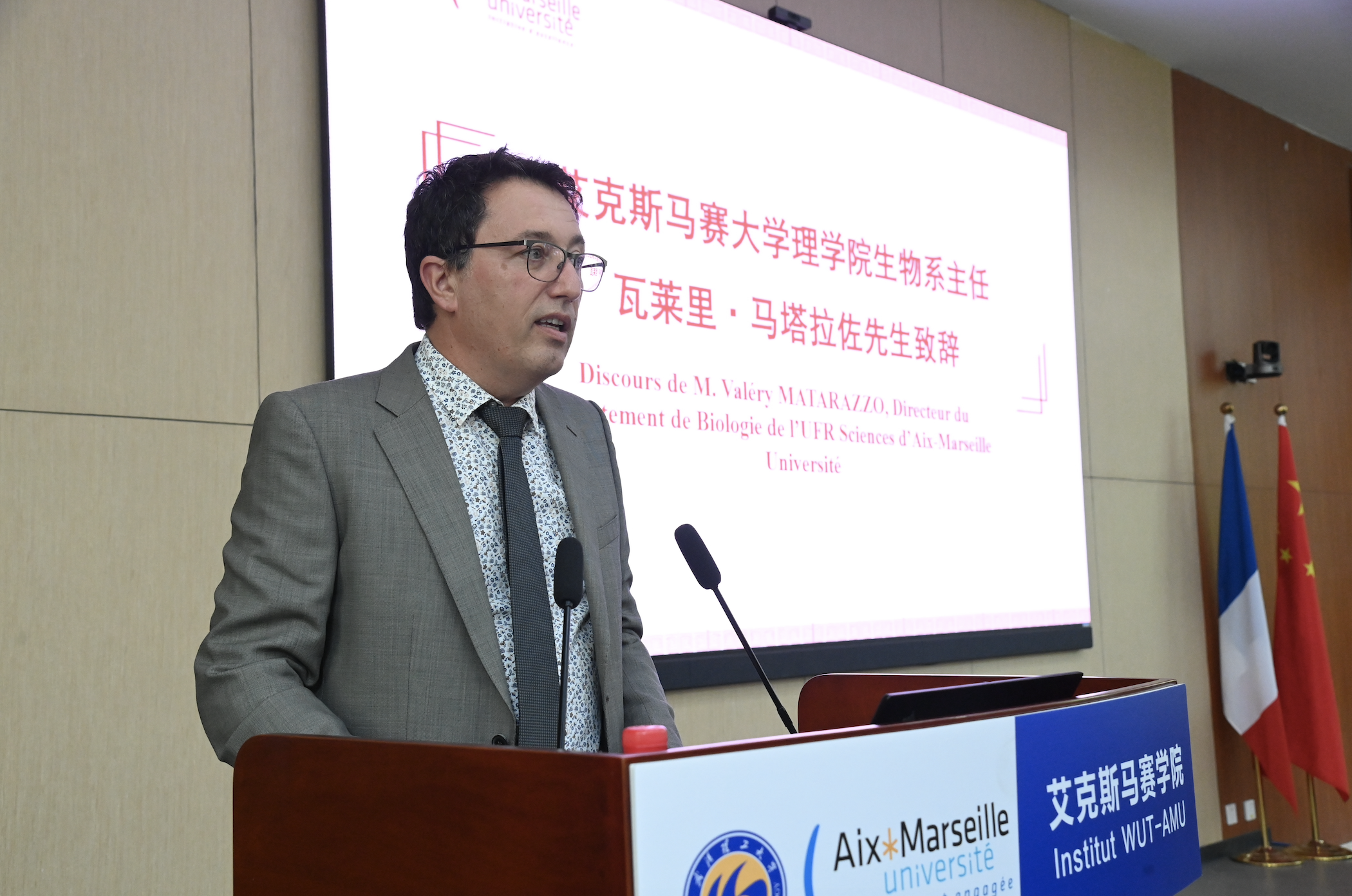 生物系主任瓦莱里·马塔拉佐代表中法双方教师向全体2023届本科和硕士毕业生致以最热烈的祝贺,并欢迎同学们到马赛大学继续深造,进一步提升科学知识和研究能力。