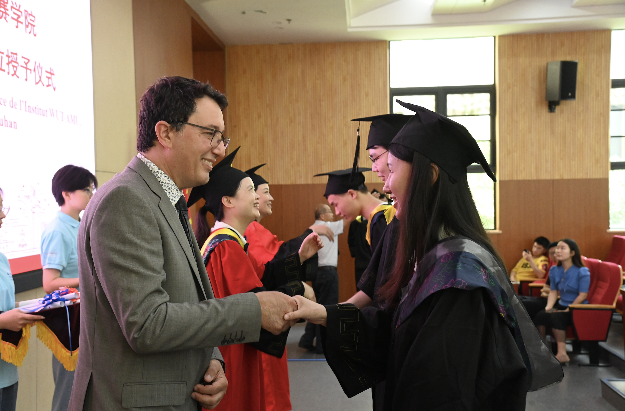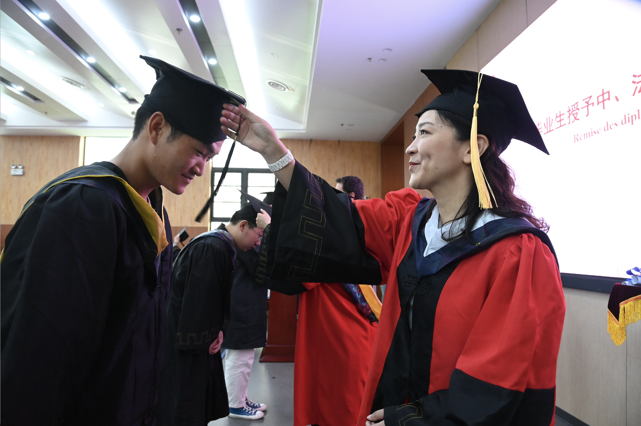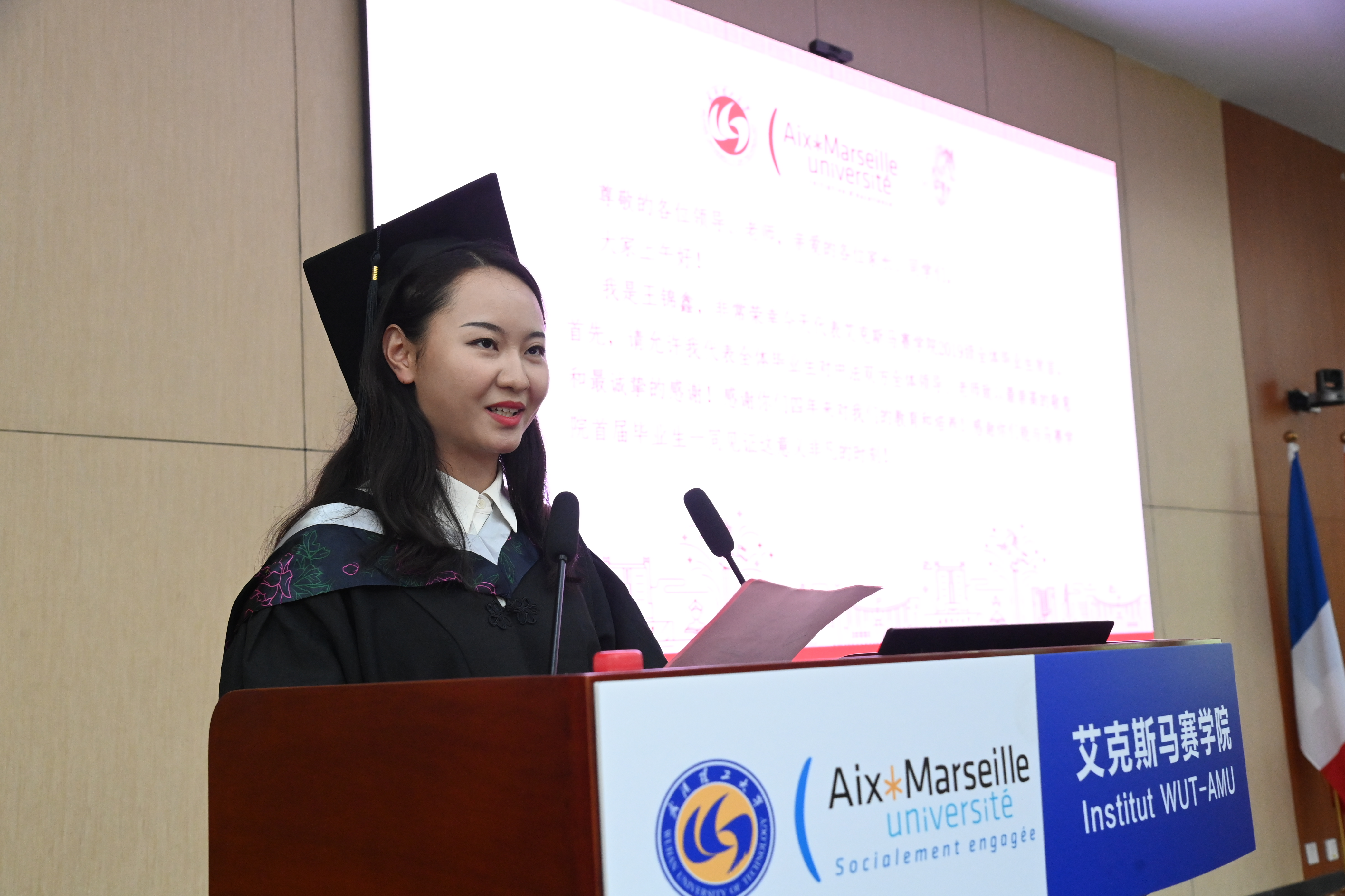 首届本科毕业生和第二届硕士毕业生寄予殷切希望。她希望同学们保持开放心态,做有国际视野的马赛学子,充分发挥跨文化交流的专业与语言优势,不断汲取世界文明的精华力量,积极传播优秀的中国传统文化,讲好中国故事,贡献中国智慧;坚持主动求知,做有终身学习能力的马赛学子,始终恪守“厚德博学,追求卓越”的校训,不断拓宽未来选择的宽度与广度;胸怀家国情怀,做有奉献精神的马赛学子,牢记“国之大者”,心系“国家大事”,把个人的理想抱负和强国建设、民族复兴的伟大事业融合起来,把个人命运与人类命运共同体建设贯通起来,为生命世界多样性建设奉献自己的智慧与力量。